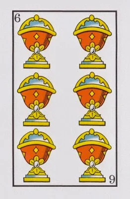 El Seis de Copas hace referencia al pasado del consultante, algo ocurrido tiempo atrás no le deja avanzar en su vida ya qué pudo resultar traumático. Puede también estar en un estado de melancolía, poco optimista, pensamientos negativos y con pesadillas.