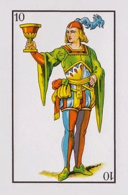 La Sota de Copas representa una mujer con instintos maternales. Puede ser una figura de una madre, hermana o amiga cercana. Una persona con un carácter agradable, romántica, sensible, soñadora, cariñosa y con ganas de vivir.