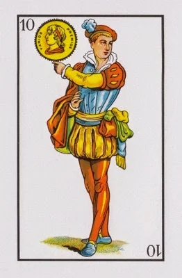 La Sota de Oros hace referencia a la importancia de lo material. Persona acomodada, buena posición financiera pero con un incontrolable impulso de gastar dinero. Optimismo, refleja la confianza en en si mismo, tanto qué nos creemos capaces de superar cuálquier objetivo y obstáculos de la vida. Aunque también se tiende menospreciar a los demás.